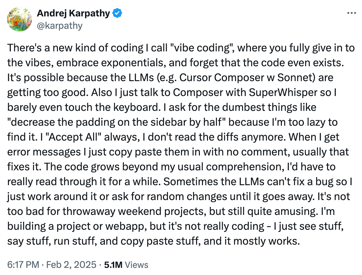 The phrase “vibe coding” grew out of online developer communities experimenting with AI-powered tools such as Replit, GitHub Copilot, Google AI Studio and ChatGPT. Early adopters noticed that the process felt more like setting the “vibe” and letting the assistant work within that direction rather than grinding through every detail. What started as a niche idea is quickly becoming a recognized way of working.