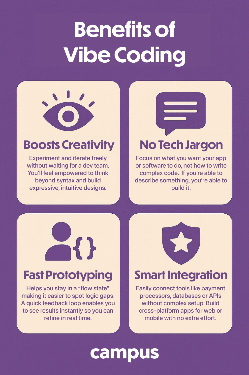 Campus’ Vibe Coding 101 course is taught live online and built to get you hands-on fast — no coding background required. The curriculum is built for non-technical folks, from product managers to marketers to data analysts, who want to add coding and AI to their toolkit.